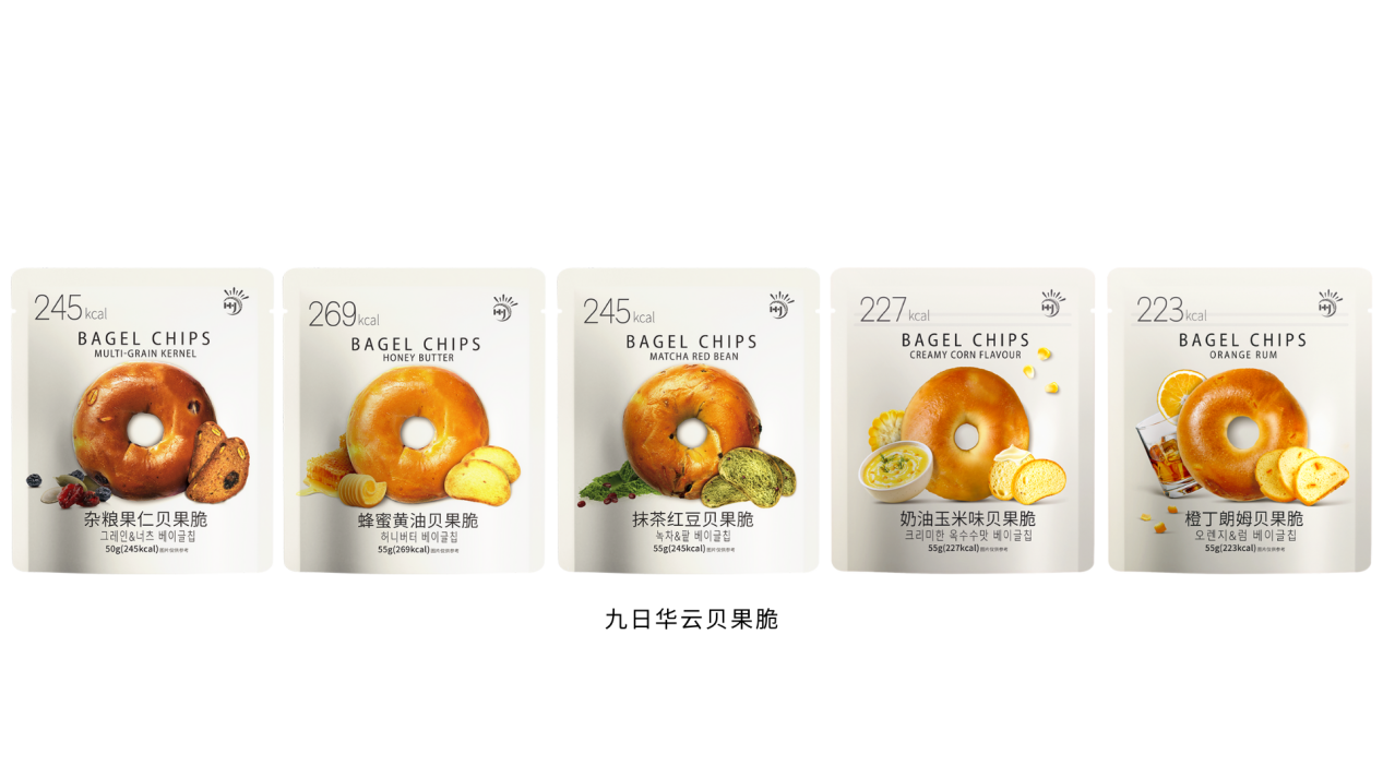 九日华云贝果脆则凭借跨界创新,将传统贝果与烘焙脆片结合,推出蜂蜜黄油贝果脆、抹茶红豆贝果脆、杂粮果仁贝果脆、奶油玉米贝果脆、橙丁朗姆贝果脆等新潮口味。九日华云贝果脆配料简单,原料天然健康,无人工色素、无防腐剂、0反式脂肪酸。同时满足年轻消费者对于高端新奇零食的追求,成为便利店渠道的潜力爆款产品。
